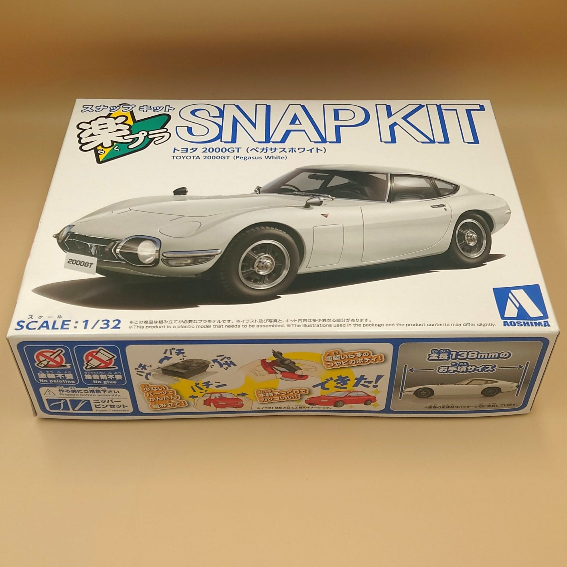1/32 青島文化教材社 トヨタ 2000GT ペガサスホワイト No.06-PW 楽プラ スナップキット 色分け済みプラモデル