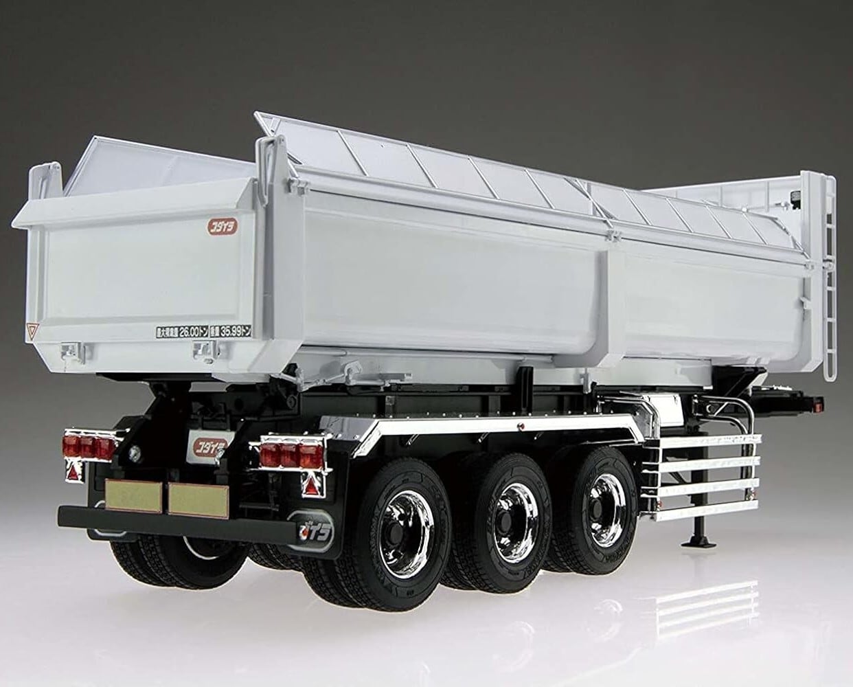 しかも迫力のダンプトレーラです。『お客様の「夢」を創るコーチ・ビルダー』小平産業製の26トン積み3軸車、アンチコ型ダンプトレーラをフル新金型でプラモデル化しました。