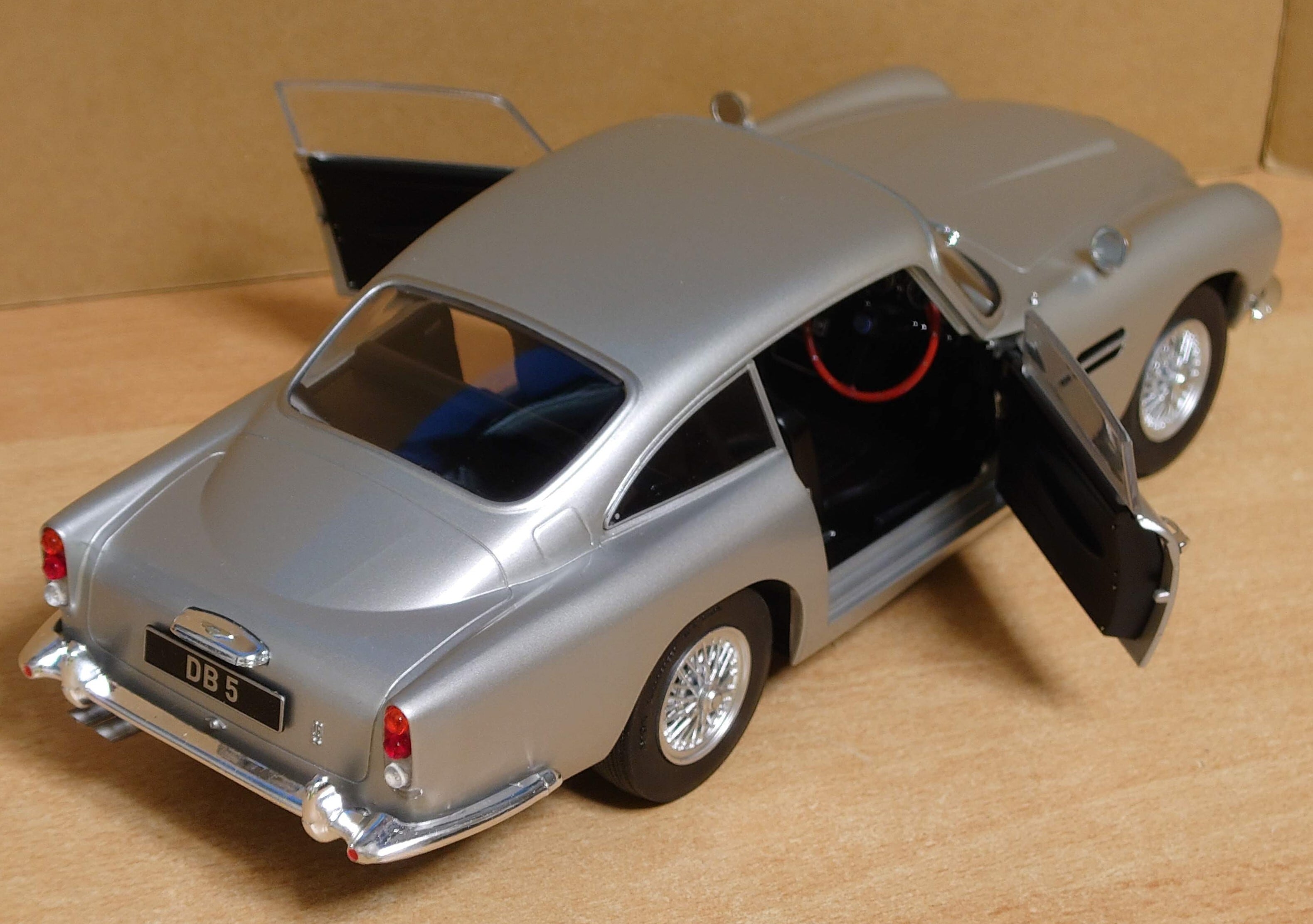 DB4に代わり登場したDB5はイギリスのアストンマーティン社が1963年7月から1965年9月の約2年間で1023台製造したスポーツカーだ。DB4・5・6の中で一番バランスの良い高い完成度で"英国の最高傑作"と言われている。4L直列6気筒DOHCエンジンを搭載し、現在ではコレクターのあこがれの的で、現存する車両は超高値で取引されている。映画007シリーズに何度も採用され、最新作品にも数々のギミックと共に登場した。