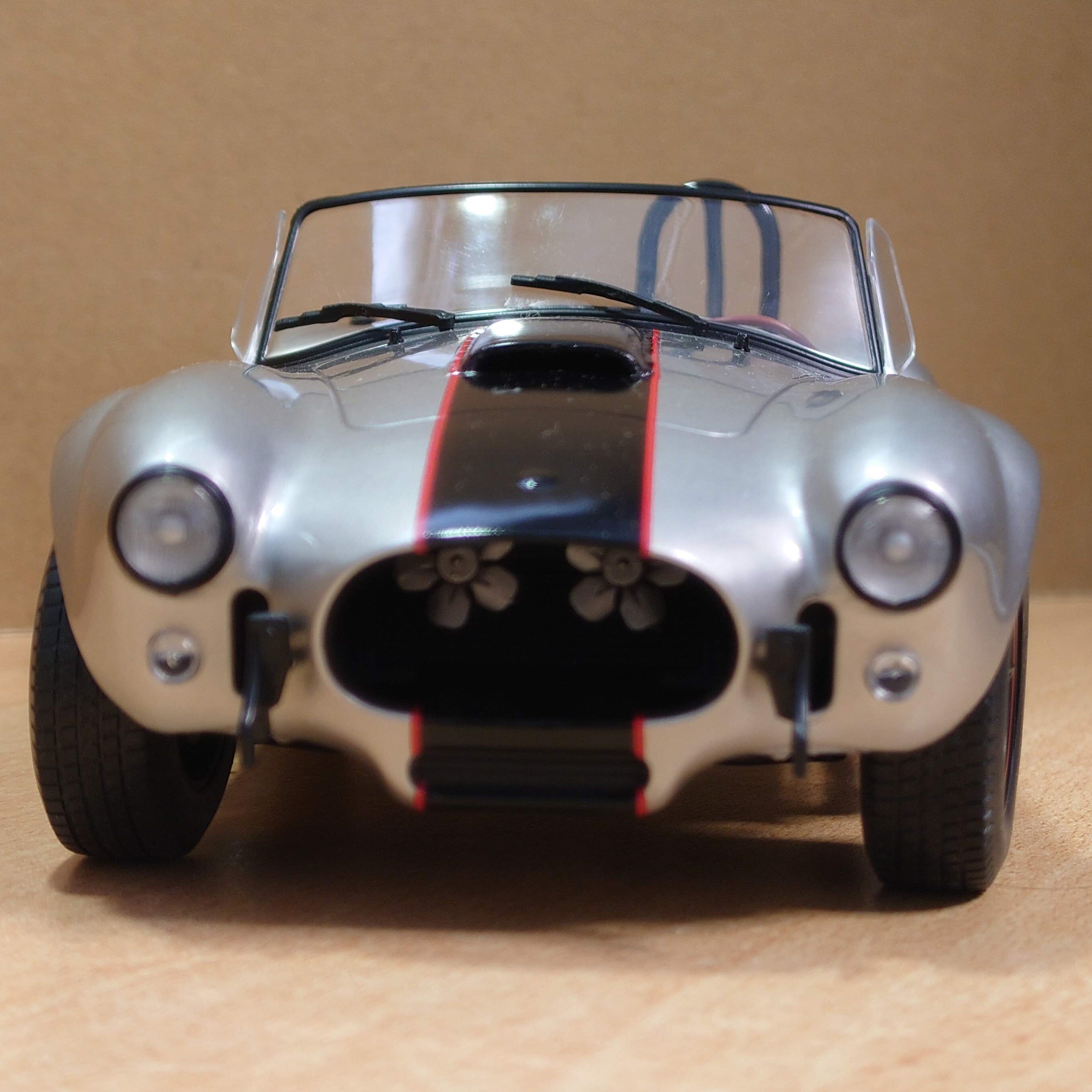 キャロル・シェルビーがレーサー引退後、シェルビー・アメリカンを設立、イギリスのACカーズのシャーシをベースにフォードのエンジンを搭載したACコブラを設計し発売したのがシェルビー・コブラの始まりだ。以降数多くのバージョンが存在する。この商品は1965年にFIA GT選手権を取得するために製造された公道を走れるS/C(セミ・コンペティション)がモデルだ。コブラは数々のレースで活躍もしたが1970年代後半にACカーズが倒産、コブラの商標権をめぐりシェルビーが勝訴して生産再開してからも変わらぬスタイルで、なんと現在でもラスベガス工場で生産が続いている。日本でもシェルビージャパンより購入可能だ。