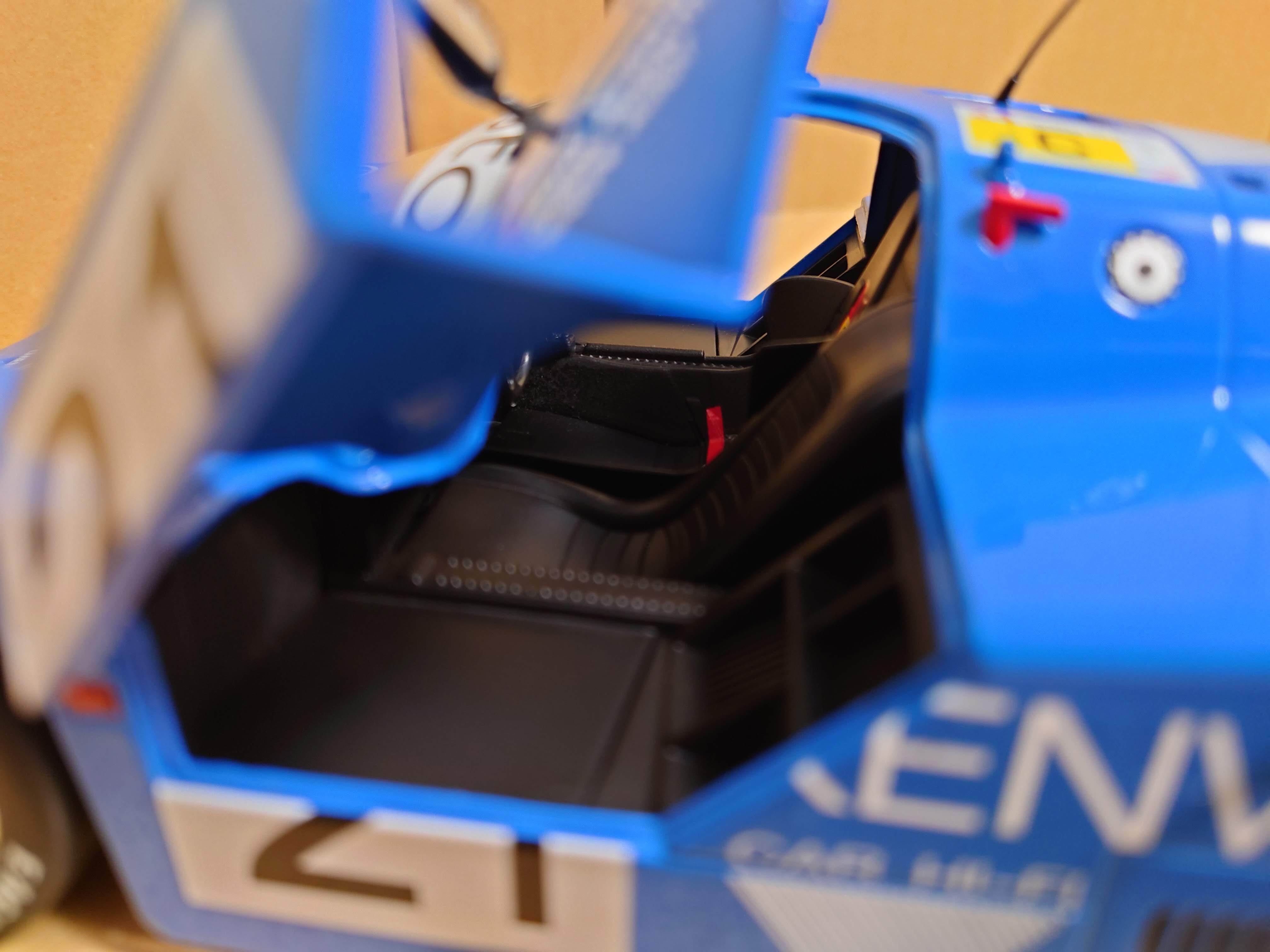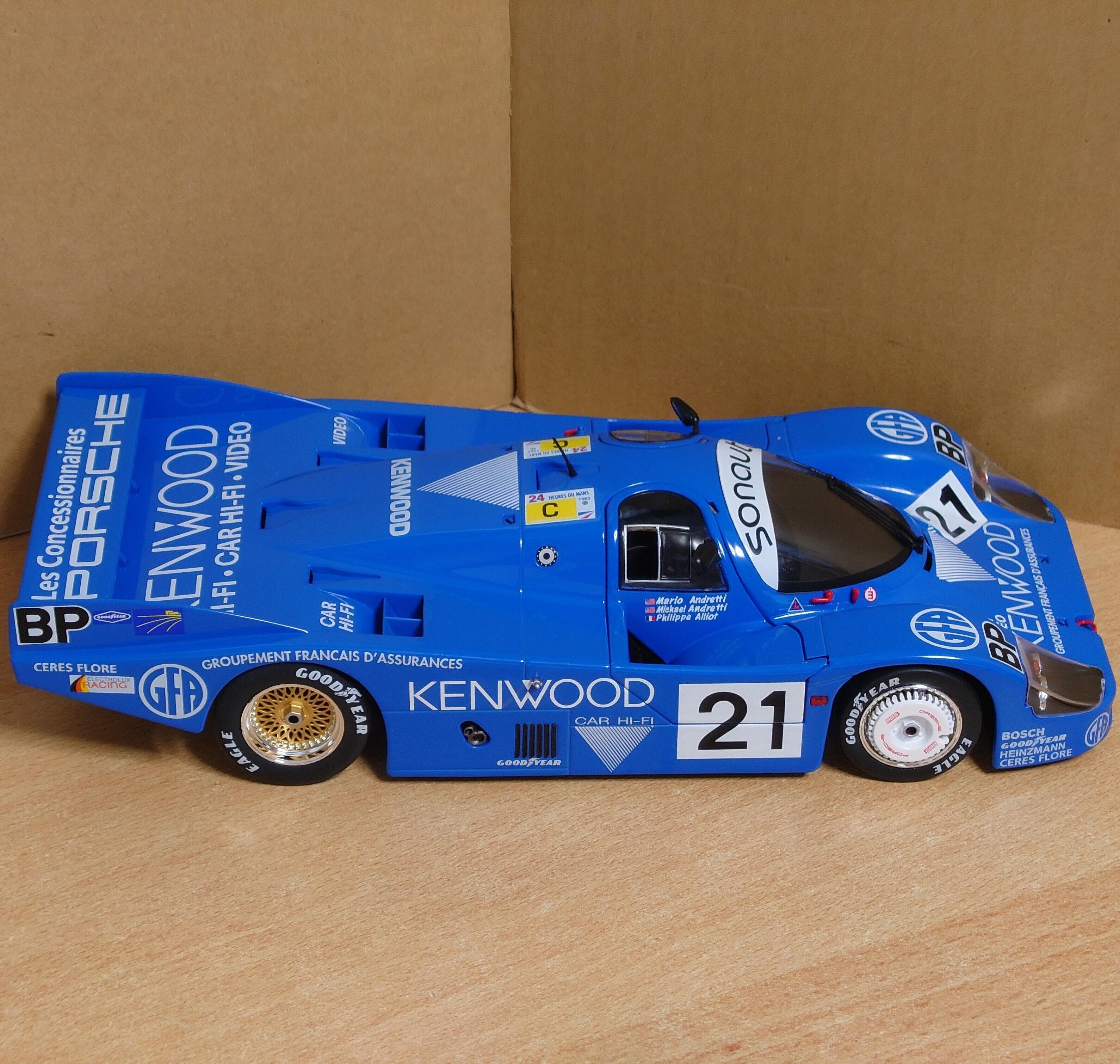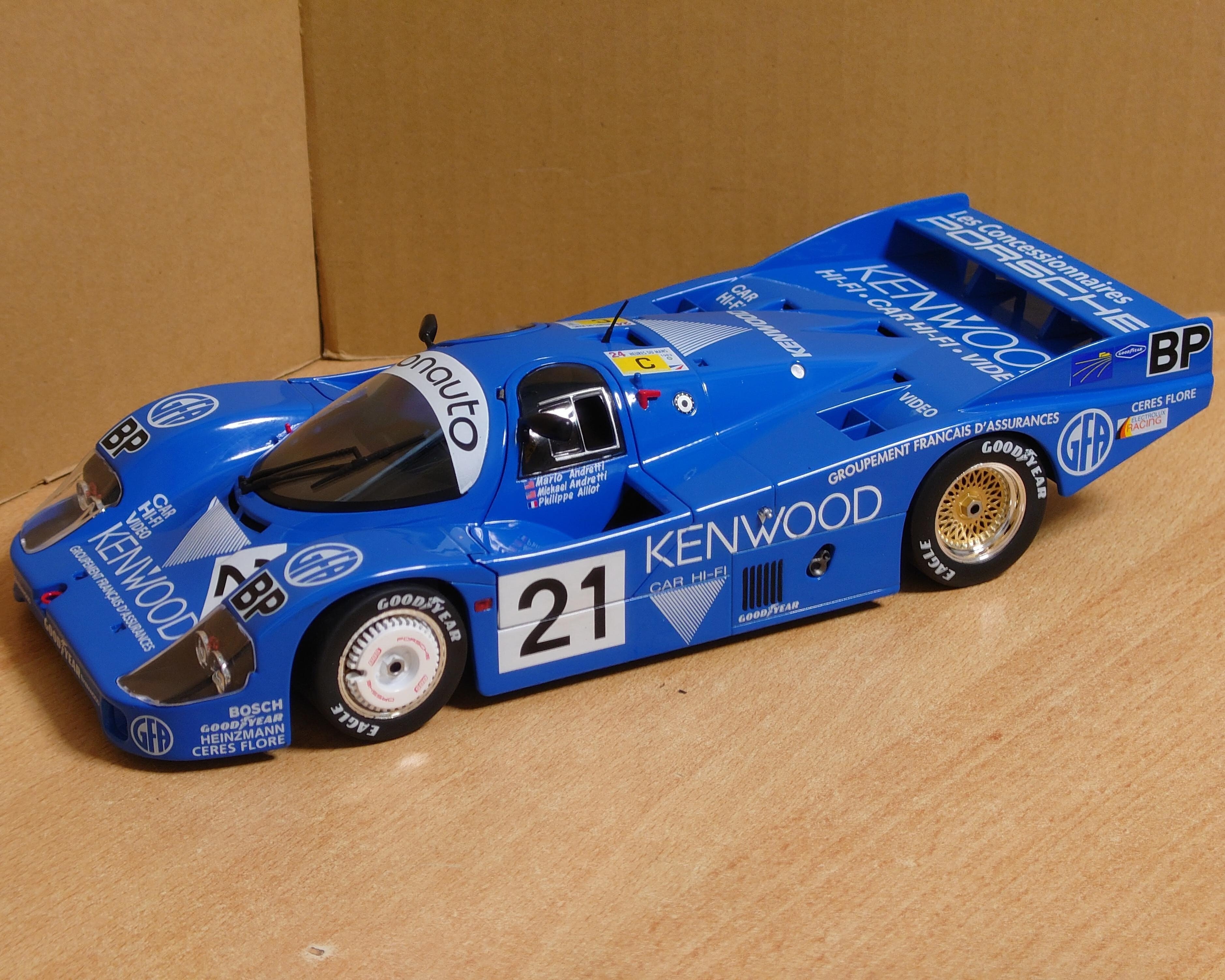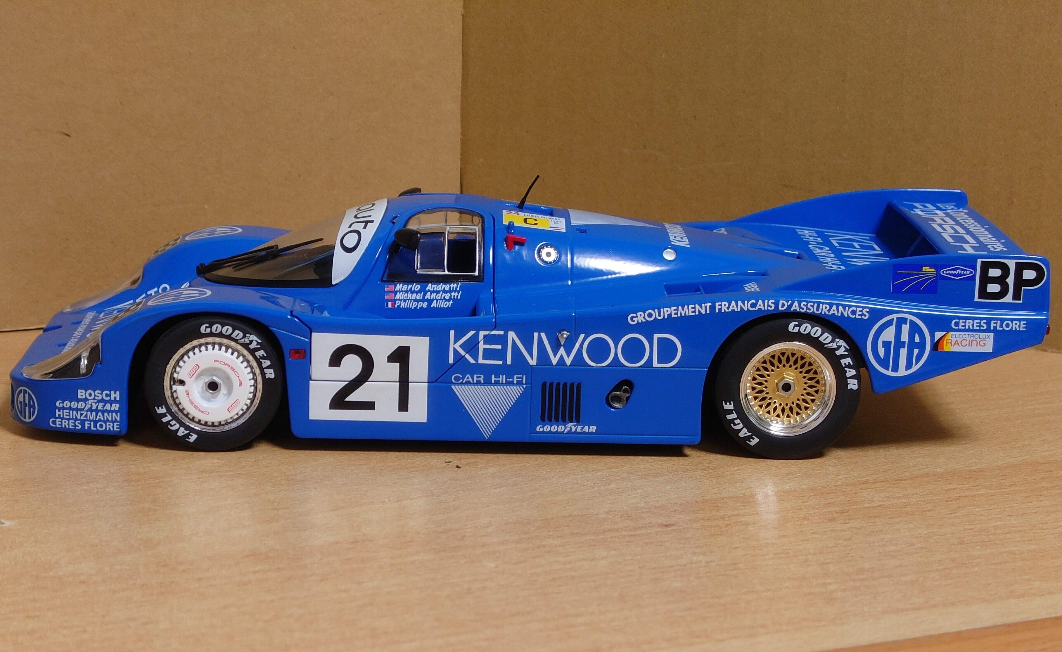 1983年のル・マンレースもポルシェが強く、総合優勝と2位はロスマンズポルシェのワンツーフィニッシュ、8位までがポルシェ956が独占し、この年もこの車の進化と圧倒的強さを見せつけた。そして昨年の優勝車の記録を大きく上回ったものの総合3位に入ったのがこのクレマーレーシングの956LHポルシェだ。KENWOODのロゴの輝くボディも美しく、ドライバーのうち2人はかの有名なアメリカ人親子、マリオ・アンドレッティ―とマイケル・アンドレッティーだ。