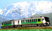 塗色は緑色の側面に白色のグラデーションを配し、長野県の県木であるシラカバの美しい森の中を走り抜けていくハイブリット車両を表現しています。