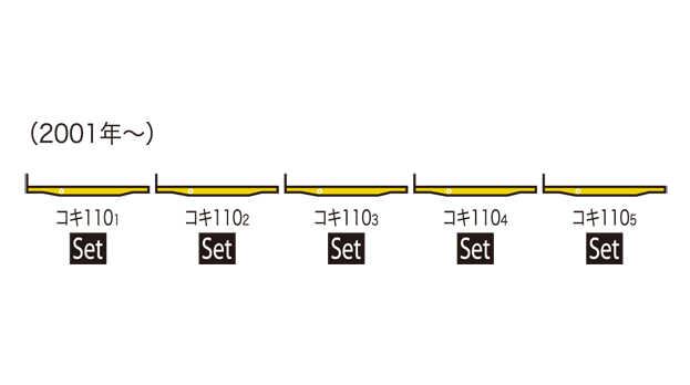 コキ110形は2001年に登場した15ftコンテナ積載用に5両が製造されたコンテナ貨車です。