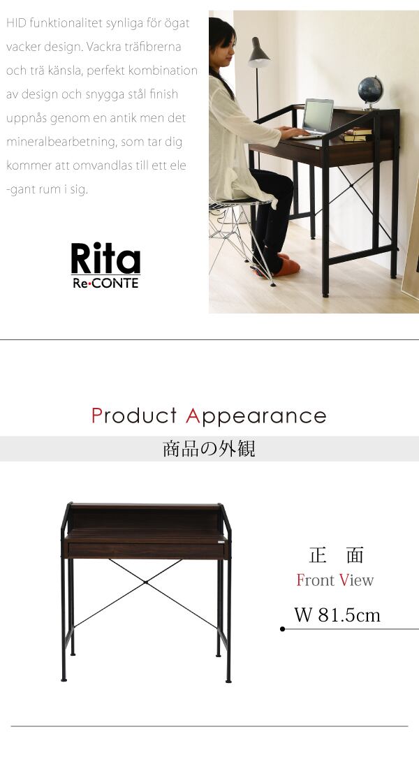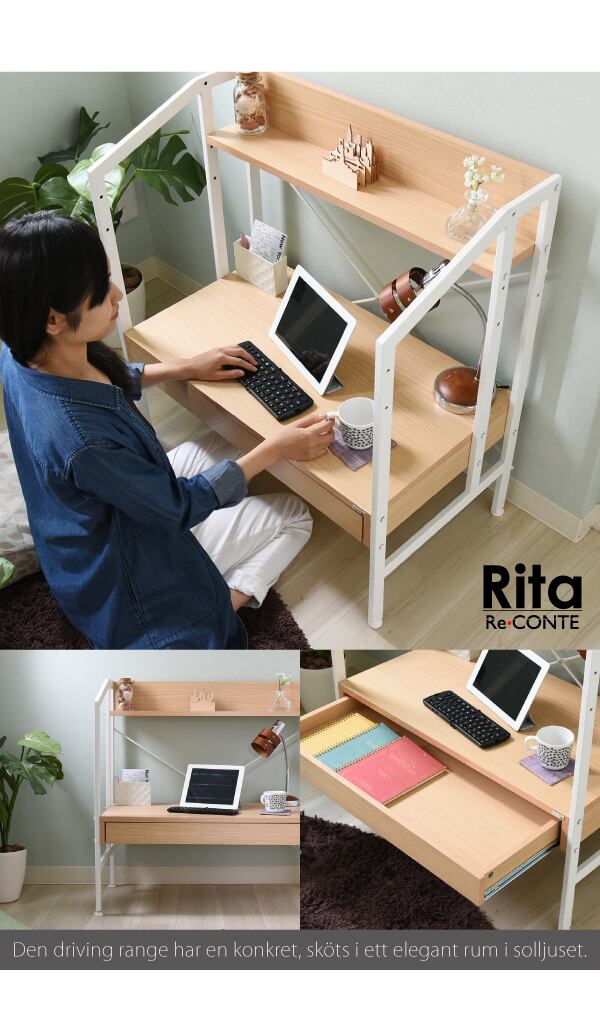 Rita デスク ワークデスク PCデスク パソコンデスク パソコン用 Rita 北欧風 北欧 おしゃれ スチール 木製 引出し付き 棚付き カフェ風