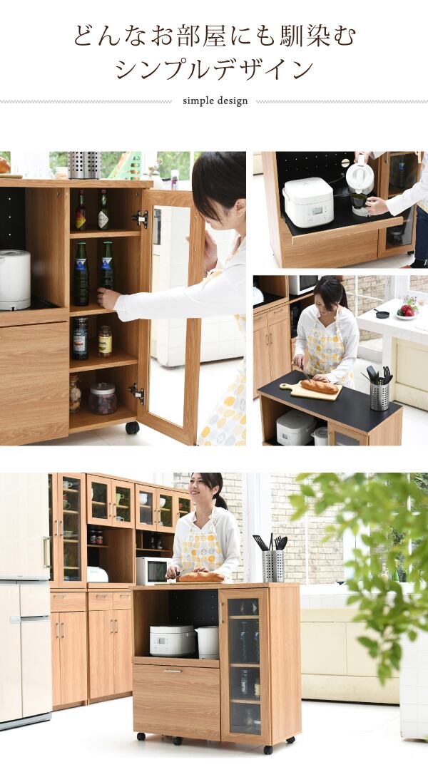 北欧キッチン キッチンカウンター キッチンボード 90 幅 コンセント付き レンジ台 キッチン収納 食器棚 カウンター キャスター付き