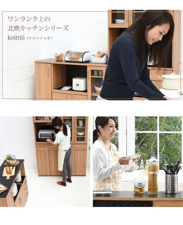 収納抜群のコンパクトカウンター。見た目以上に入るから、食器や家電、食品などの収納がこれ一台に収納可能なキッチンカウンター。