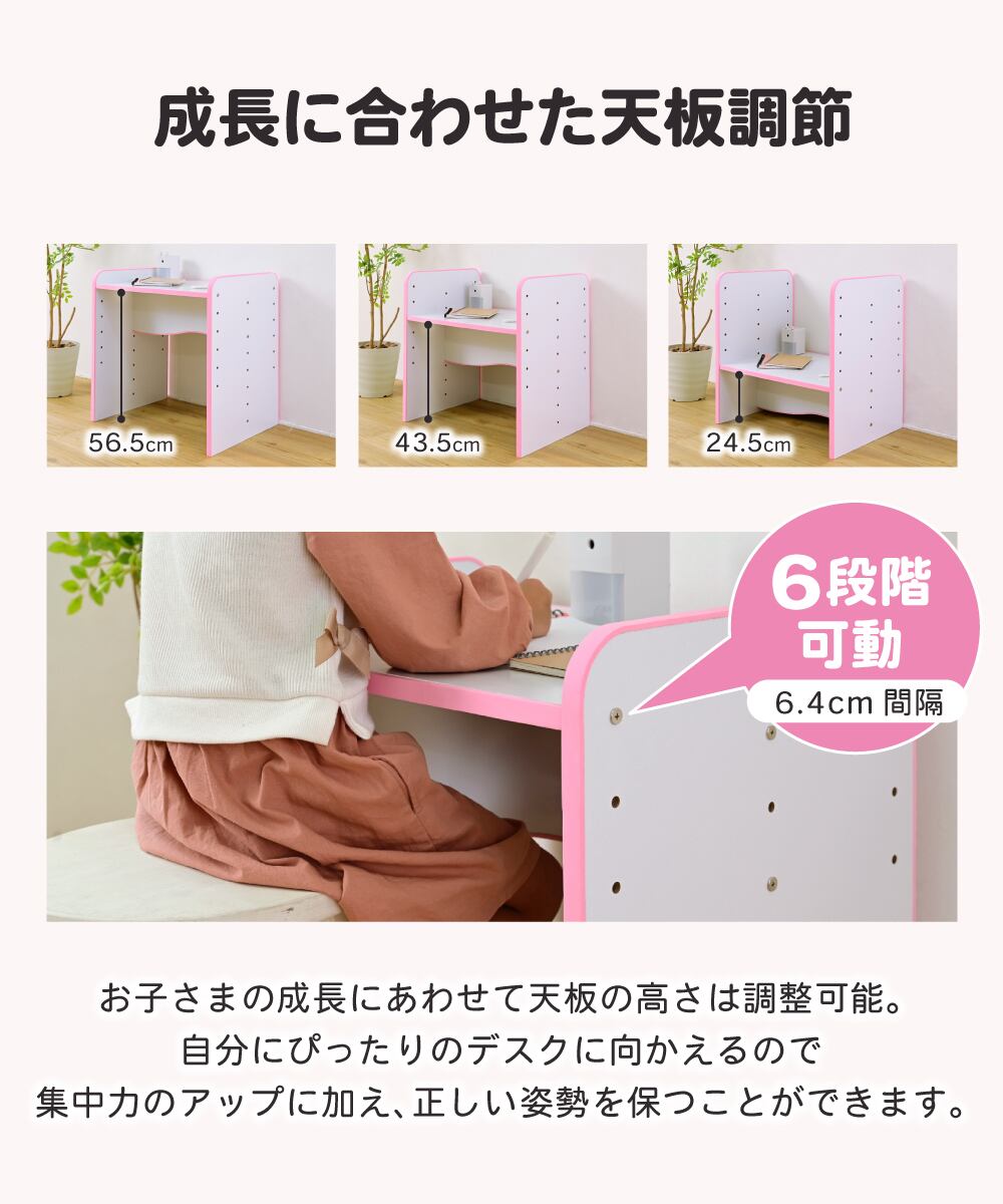 「自分だけの家具」デビューにぴったり!小さなお子様でも安心して使えるキッズ家具シリーズ。6段階の高さ調節機能で成長に合わせた使用が可能。