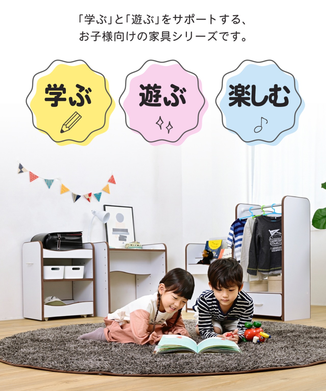 「自分だけの家具」デビューにぴったり!お子様も安心して使えるキッズ家具シリーズ。ランドセルやおもちゃなどを収納しても、キャスター付きだから移動もらくらく!