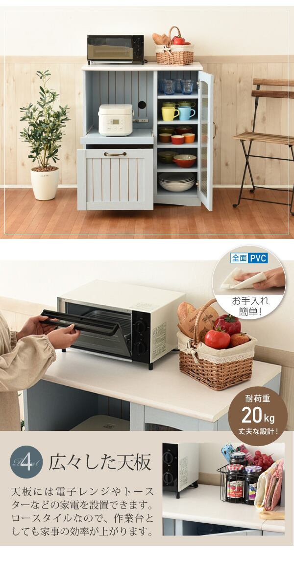 フレンチカントリー キッチンカウンター レンジ台 幅 75 高さ 90 スライド棚 付 コンセント 付 キッチン収納 収納 棚 ガラス扉 姫
