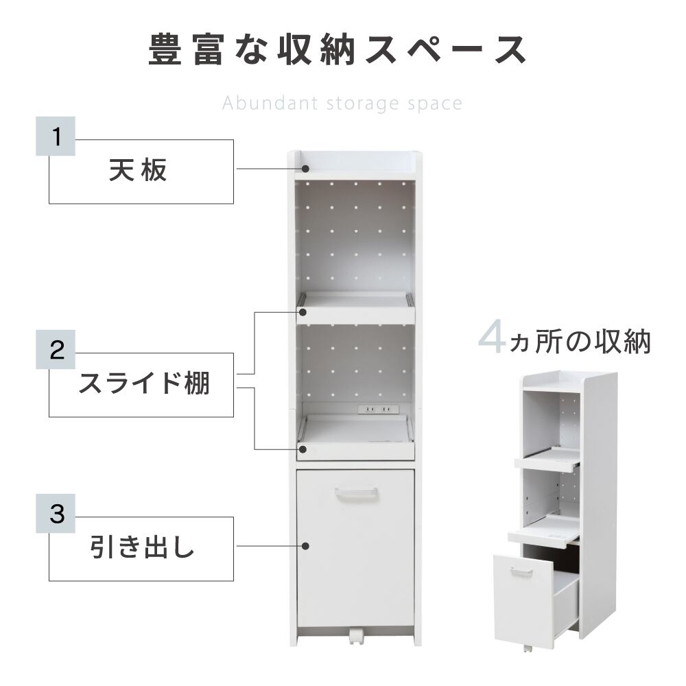 隙間タイプのキッチン収納。ちょっとした隙間や収納スペースにお困りの方にぴったりな、スリムタイプの家電収納家具。家電が2台収納できる、高さ120cm