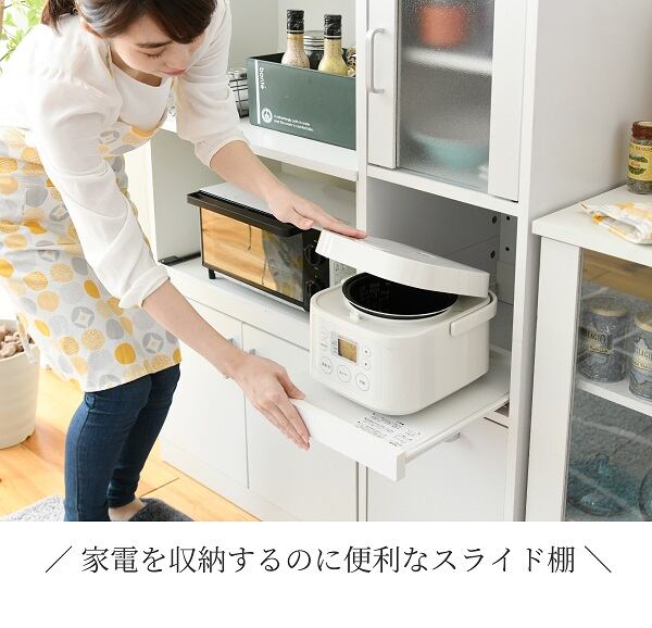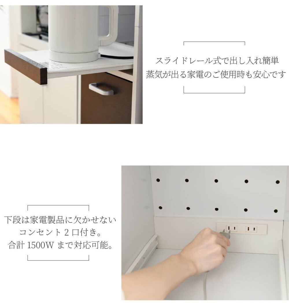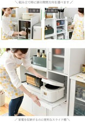 隙間タイプでスリム設計のキッチン収納。高さ違い3タイプのシリーズ。高さ120扉タイプは、一人暮らしサイズの冷蔵庫横にぴったりサイズ。リビングで収納する事になっても邪魔にならないシンプル・コンパクトデザインです。小さいながらも、家電収納可能なスライドテーブルと、食器類の収納に適した扉収納があるコンパクトオールインワン。ペットボトルも収納可能な深めの引出しもあります。