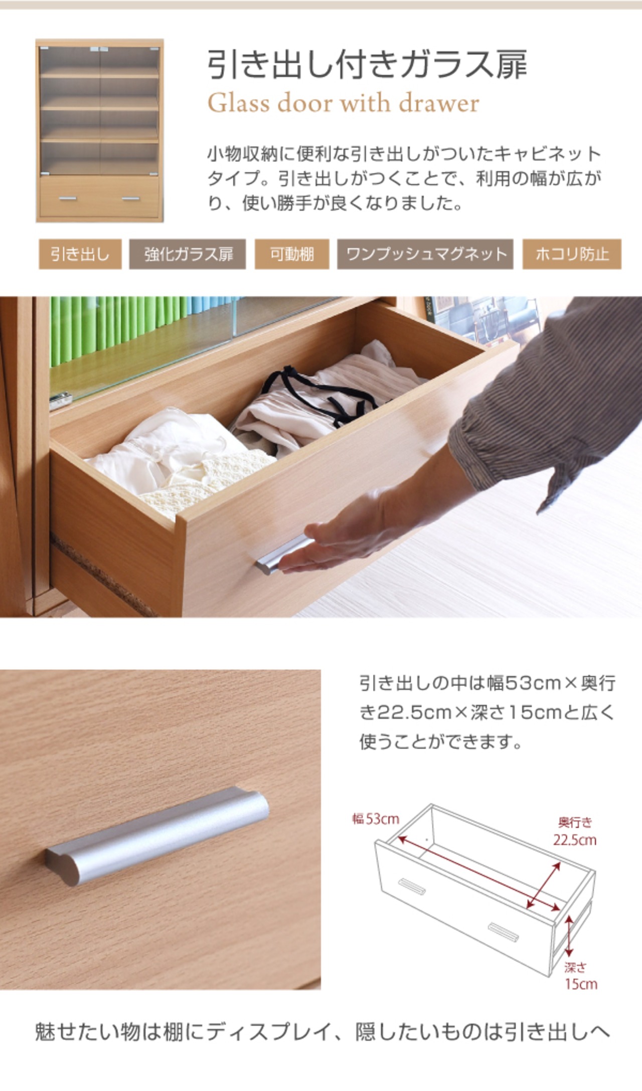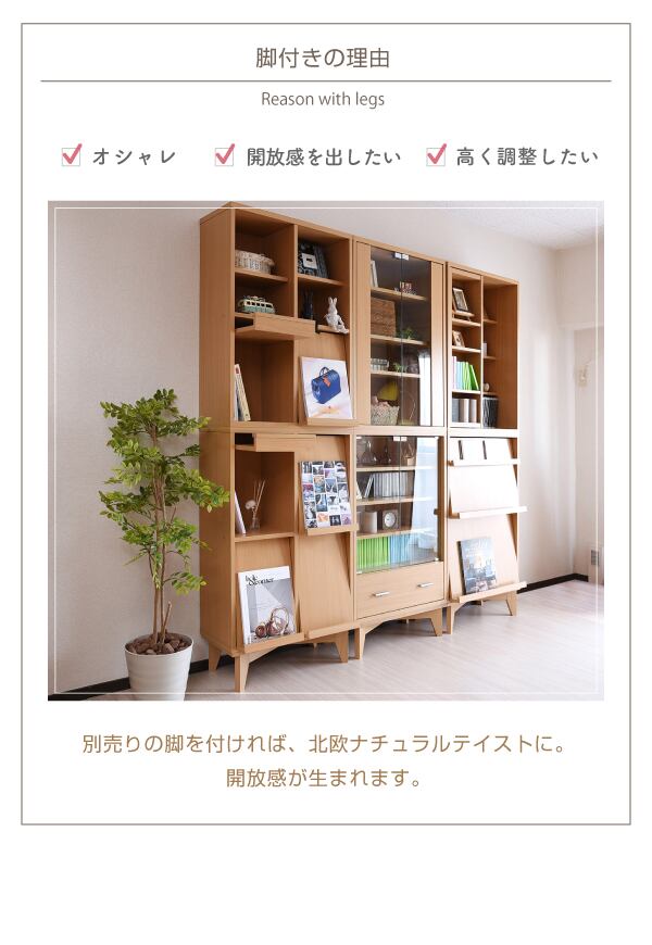飾り棚としても使えるガラスキャビネット。つみかさねても並べても自在に組み合せ可能な6種類のリビングボード