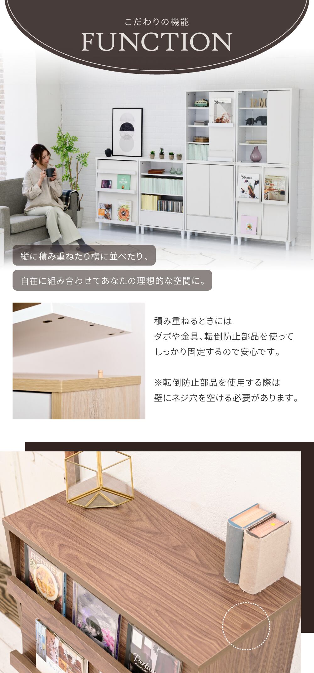 6つのデザインと5つのカラーからお選びいただける6デザインキャビネット”Adatto”。扉部分には雑誌やポストカードなどお好みのディスプレイを。