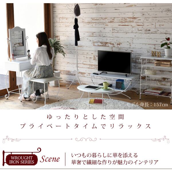 女性のお部屋にぴったりなポールハンガー。クラシックな印象を与えるロートアイアンの曲線が特徴。