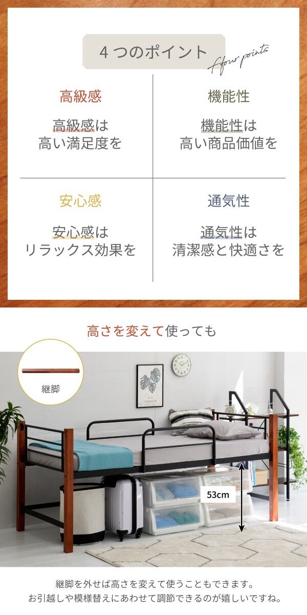 ロフトベッド 天然木 低め ロータイプ シングル パイプ システムベッド フレーム 高さ 140.5cm 幅 209cm 高さ調節 頑丈 転落防止 手すり 大人用 スチールベッド
