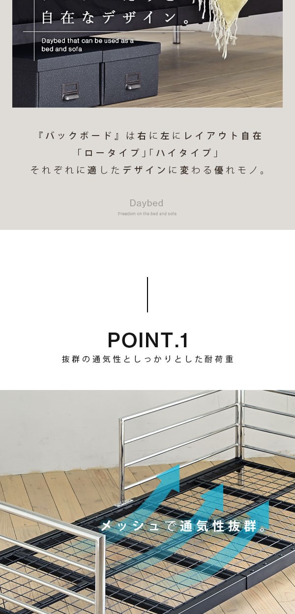 クールなデザインが印象的なセミシングルショートのデイベッド。ベッドとしてもソファとしてもお使いいただけます。