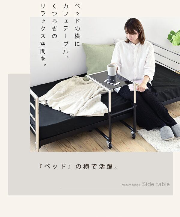 ベッドサイドテーブル スリム サイドテーブル キャスター 付き ベッド横テーブル ガラス コの字 ブラック ソファ サイドテーブル ベッド脇 高さ 調整