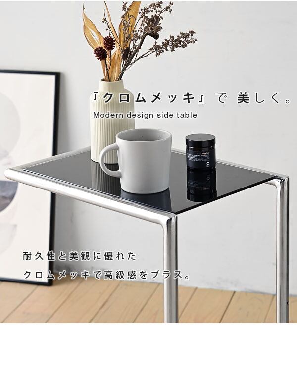 クールなデザインが印象的なサイドテーブル。高さ調節ができるので使いたいサイズに合わせられます。