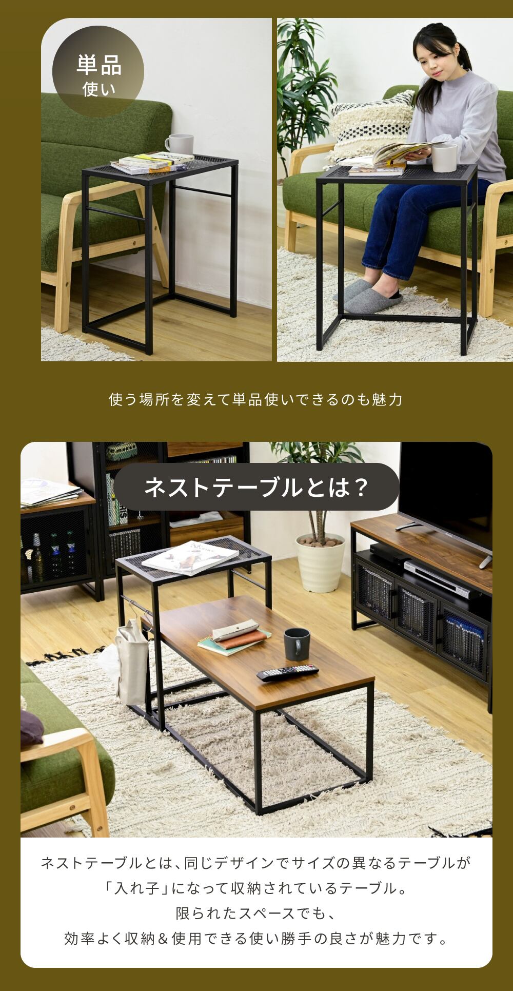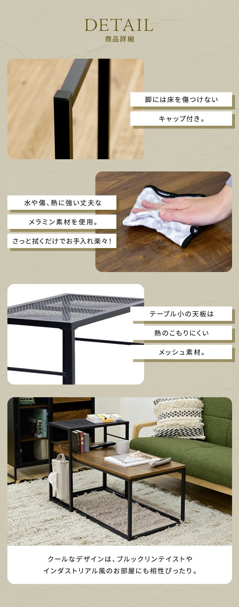 Rete ローテーブル セット ネストテーブル おしゃれ センターテーブル 幅90 木製 アイアン メッシュ 2個セット センターテーブル 一人暮らし