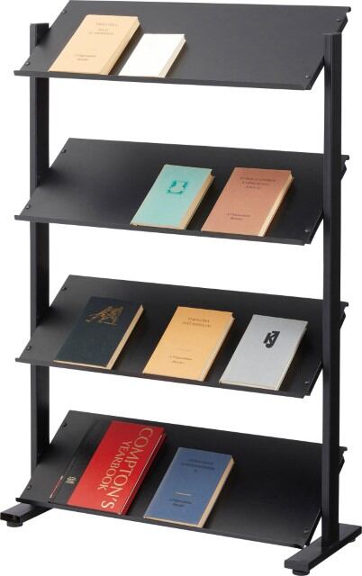 【原産地】 中国 組立式 2人で15分ラック 4段 シェルフ 棚 収納棚 オープンラック 本棚 斜め 店舗ディスプレイ 什器 スチール シンプル 黒 ブラック 白 ホワイト ブラウン