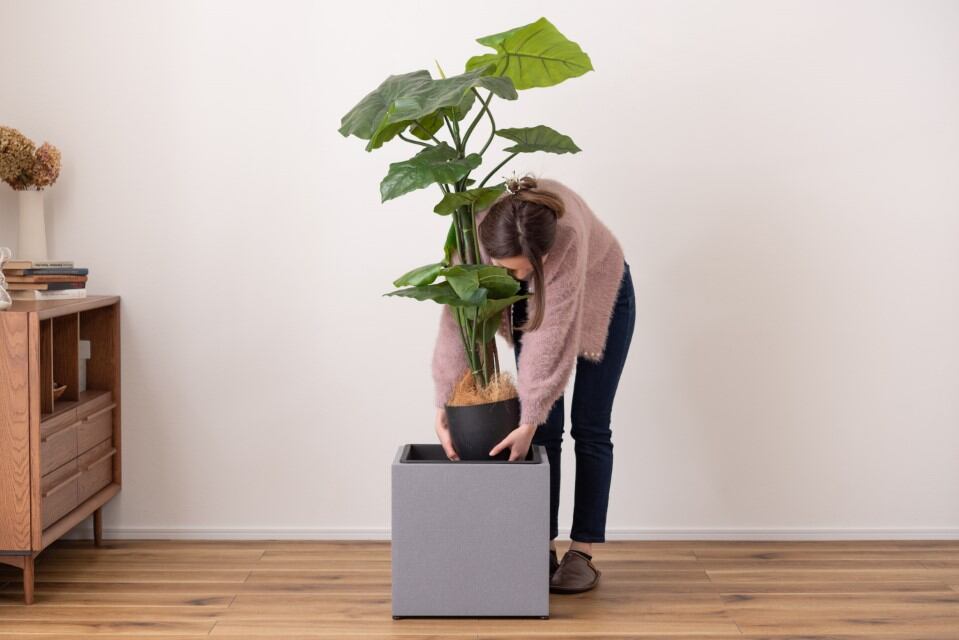 鉢のまま入れるだけで、スタイリッシュになるプランター。