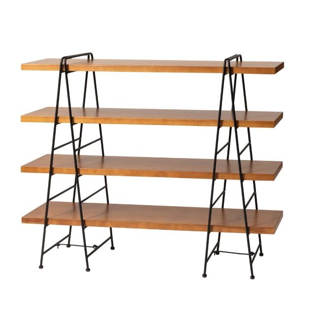 フォールディングシェルフ4段 天然木天板(パイン) スチール脚