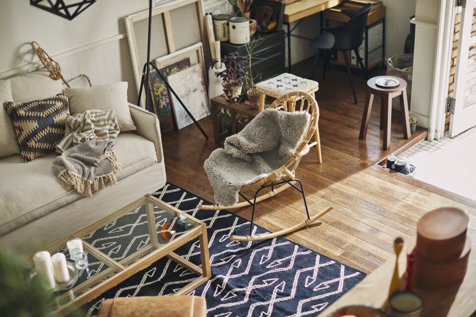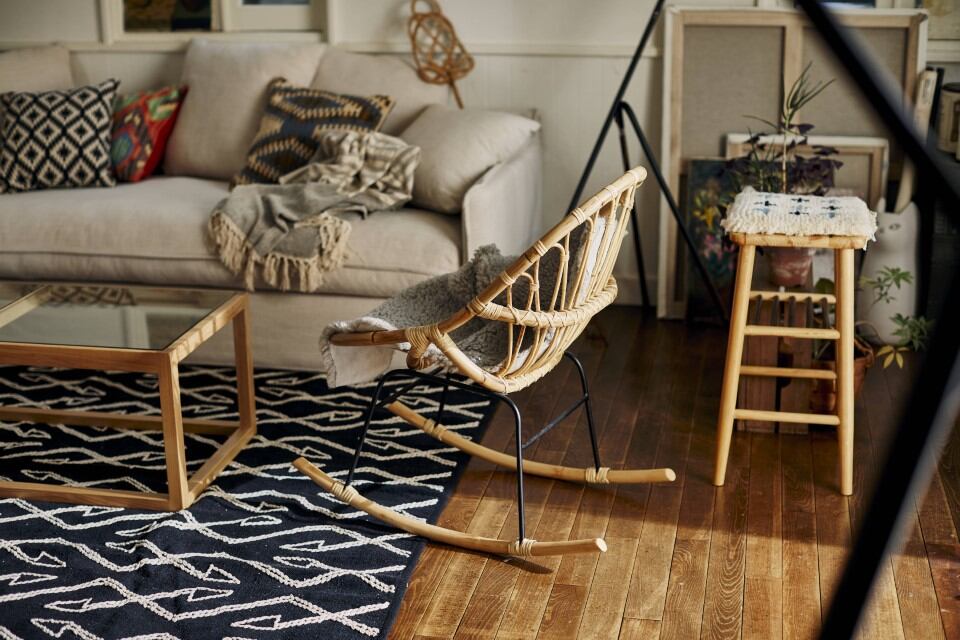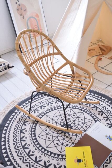 ロッキングチェア 天然ラタン(籐製) スチール脚