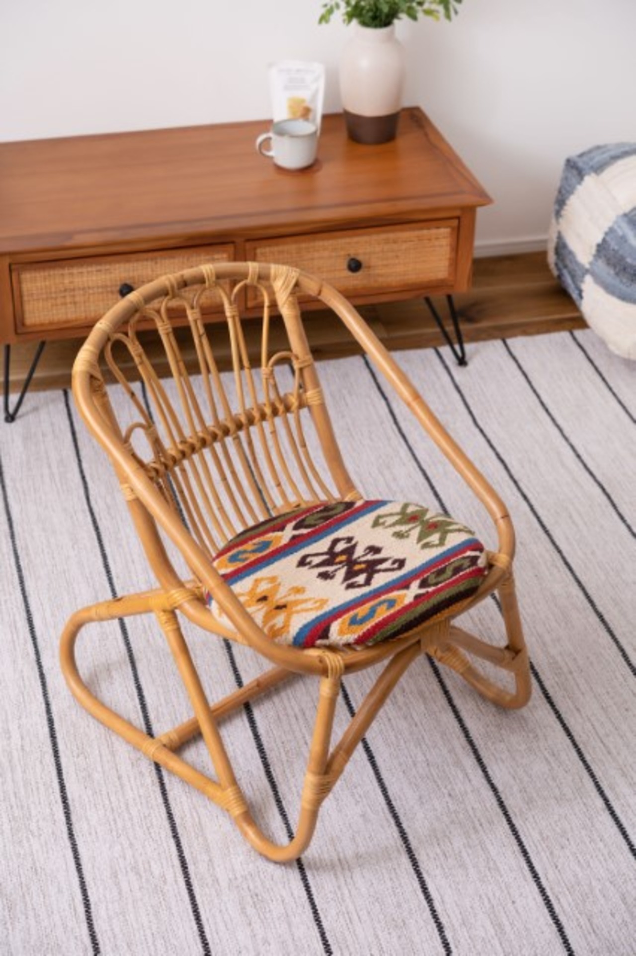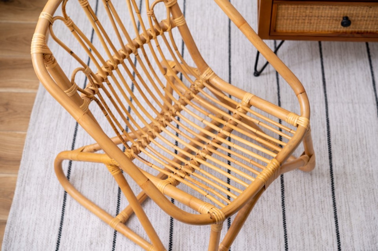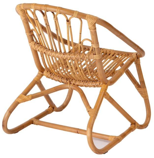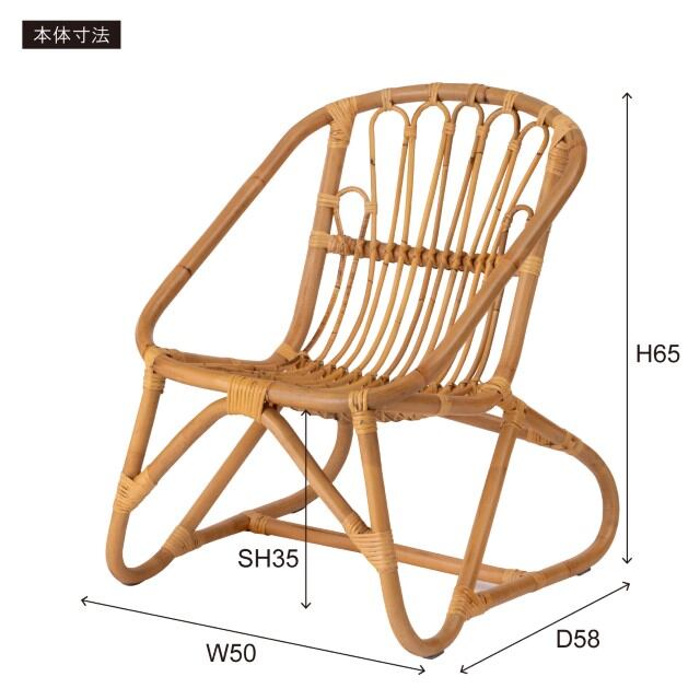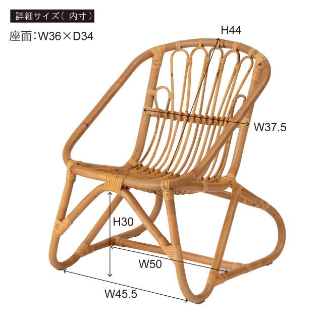●天然素材の優しい風合い。丸みを帯びたコンパクトなラタンチェア。●体全体を優しく支える流線形/天然ラタンの特徴はしなやかなライン。体のラインにフィットし、包み込まれるような座り心地。●置くものを引き立たせるデザイン/シートクッションと合わせてもGOOD。手軽に色や柄を取り入れられます。ナチュラルなデザインがより引き立ちます。●かわいらしいデザイン/空間になじむ、素朴でナチュラルなデザイン。オブジェのようなインテリアのアクセントになるチェア。●軽量設計/天然ラタンのもう一つの特徴は強度が高く非常に軽量なこと。女性でも簡単に持ち運べます。●細かなディティール/使われている素材は全て天然ラタン。個体差のあるラタンを手作業で丁寧に編み込み作られています。