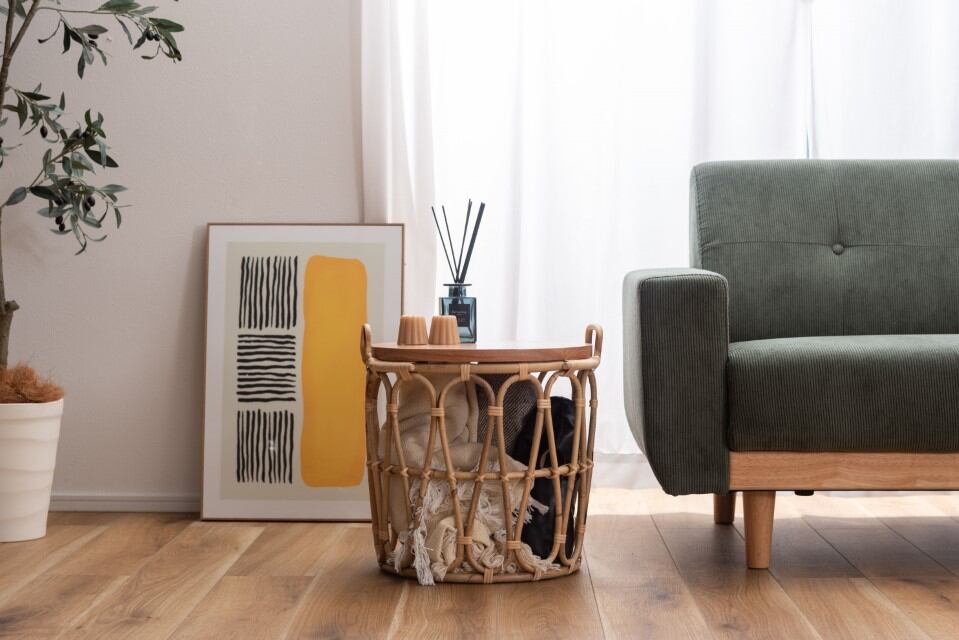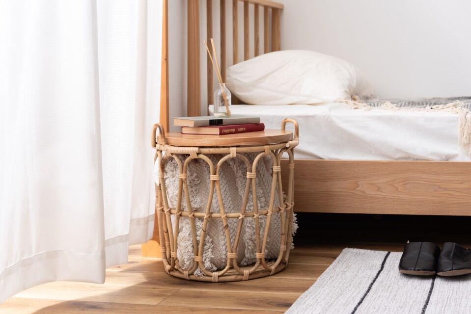バスケットテーブル 天然木(ミンディ)天板 天然ラタン(籐製)