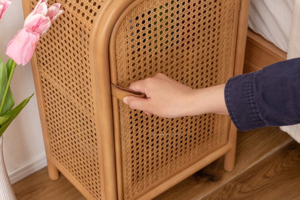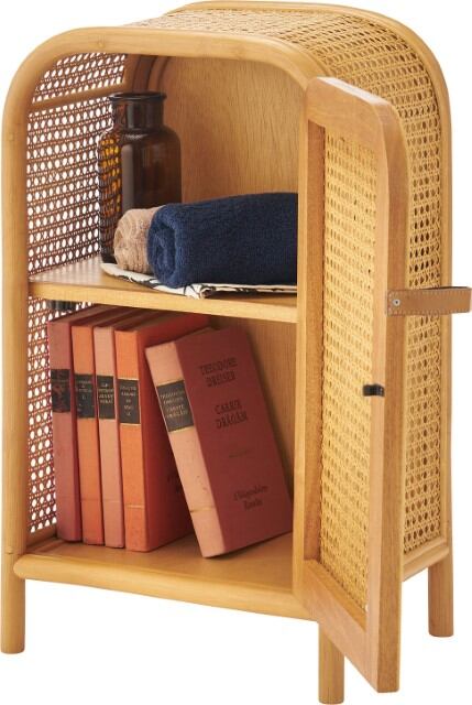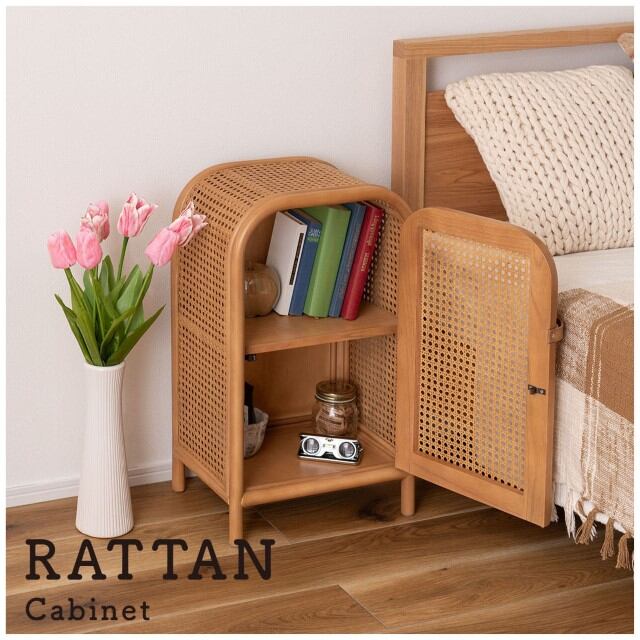 キャビネット チェスト ラタン ミニキャビネット 小さめ 小さい かわいい 扉付き 2段 本棚 ベッドサイド 寝室 コンパクト 韓国インテリア ナチュラル