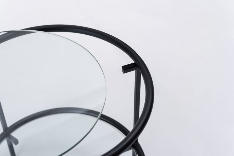 【原産地】 中国 完成品 ガラステーブル センターテーブル サイドテーブル ラウンドテーブル ガラス アイアン インダストリアル モダン シンプル おしゃれ クリア ブラック 黒 ネストテーブル 棚 ディスプレイ 2段 ナイトテーブル 強化ガラス コレクション 収納