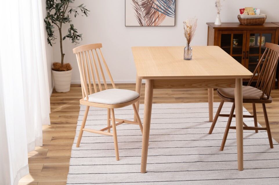 ●天然木アッシュ(天板は突板仕様)の木目が美しい、北欧ナチュラルテイストのダイニングテーブル。●伸長式で色々な生活スタイルに対応。天板サイズをシーンに合わせて変更できる、伸長式のダイニングテーブル。●生活スタイルに合わせて天板の大きさを変えられるので、家族や友人との食事の際などフレキシブルに可変し、様々な場面で長く使い続けることができます。●伸長用天板は天板裏に収納が可能。●天板幅は120cmから150cmへ伸長が可能。●シンプルで優しいテイストのダイニングテーブルなので、色々なデザインのチェアに合わせやすいのも魅力の一つ。
