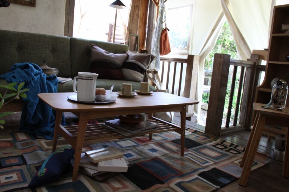 ヘンリー センターテーブル 天然木(アッシュ) 棚付ローテーブル