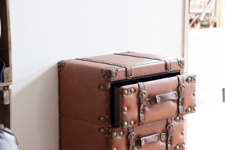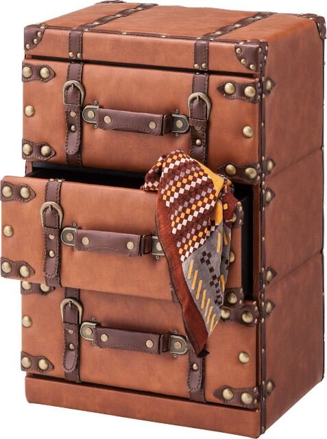 チェスト3段 レザーボストンバッグ調引き出し棚