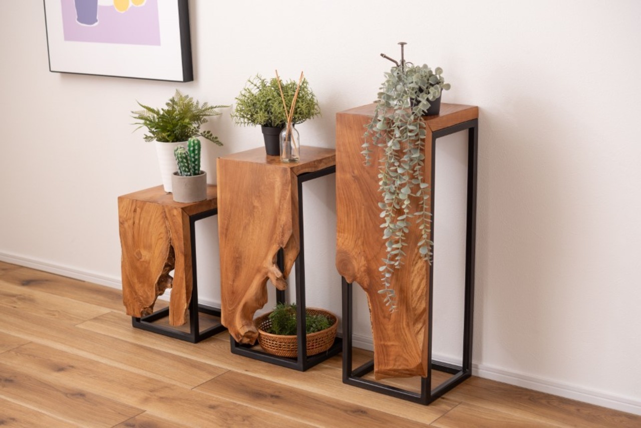 プランタースタンド 天然木(チーク) スチール脚 サイドテーブル