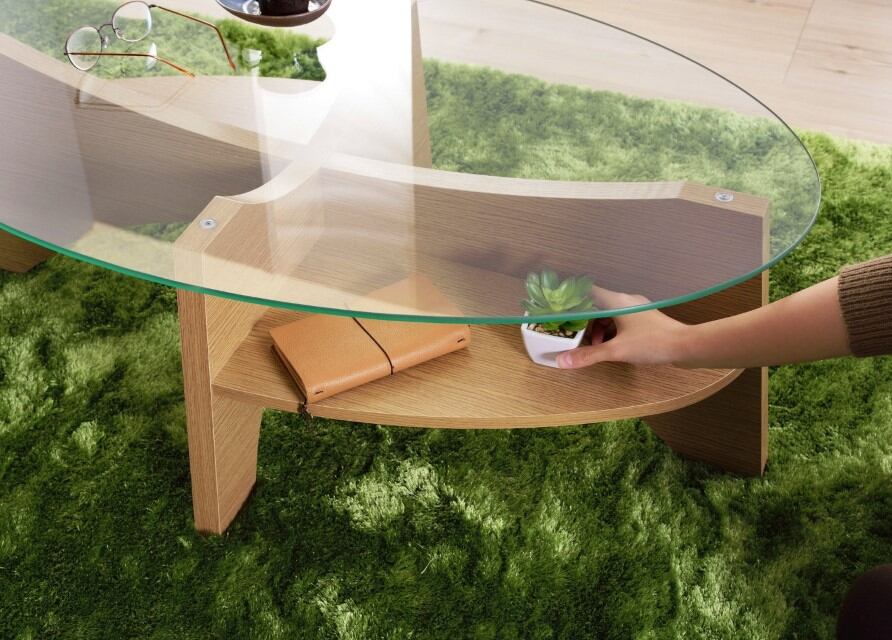 オーバルテーブル 強化ガラス天板 センターテーブル ローテーブル