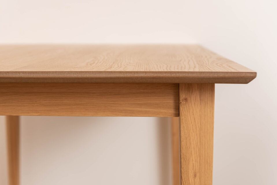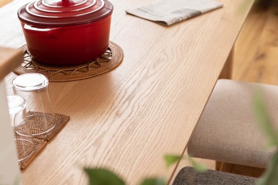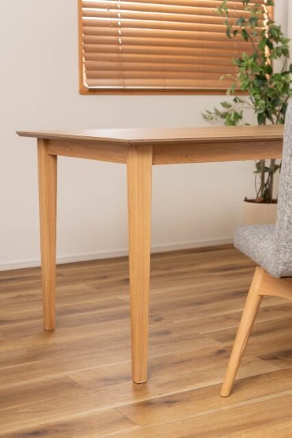●ホワイトオークの木目を活かした、シンプルなデザインのダイニングテーブル。●木目が美しいホワイトオークを使用。清楚感があり上品な色味と木目が特徴で、ナチュラル系インテリアの代表的な材として、オーク材の魅力を活かしたシンプルなデザイン。●脚は天板側から床側にかけて徐々に細くなっていくテーパードレッグ。ダイニングスペースが重くなりすぎず、様々なチェアに合わせられるデザイン。●天板のエッジは斜めにカットしデザイン性の高い仕上がり。●サイズ展開は省スペースでも使いやすい135センチと、4人で座ってもゆったりと使用できる150センチの2種類からお選びいただけます。●木目の表情を活かした天板が食卓に彩りを与えてくれます。