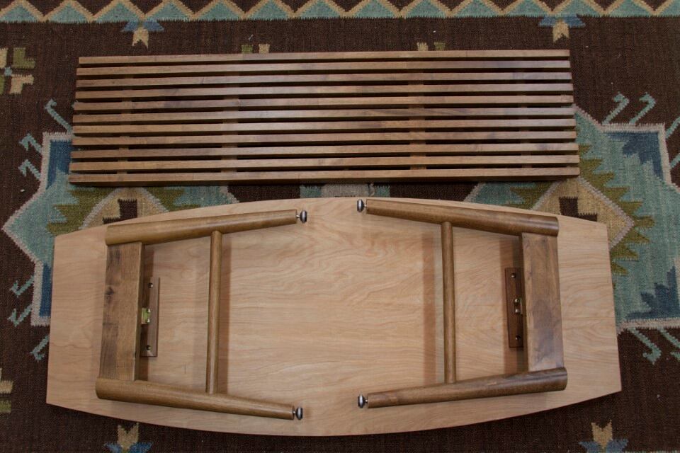 【材質】 天然木(ラバーウッド) 天然木化粧繊維板(ウォルナット) ウレタン塗装 アジャスター付 棚板取り外し可能 折りたたみ式