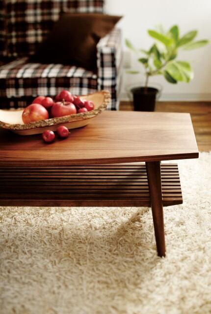 アポロ フォールディングテーブル 天然木(ラバーウッド・ウォルナット)板 棚付ローテーブル センターテーブル