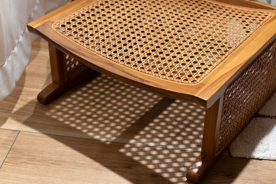 【材質】 天然木(チーク) ラッカー塗装 ラタン