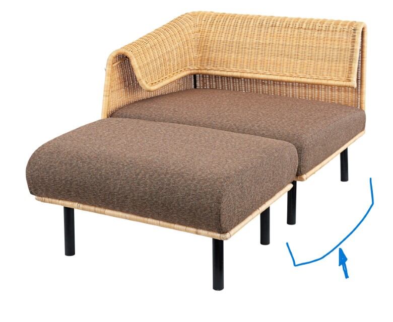 サンドラー 片肘(向かって左) 1人掛けチェア 天然ラタン(籐製) クッションファブリック座面