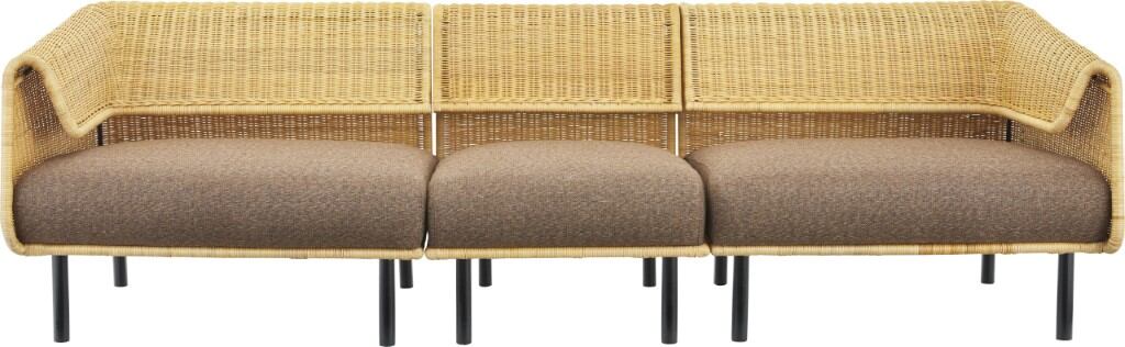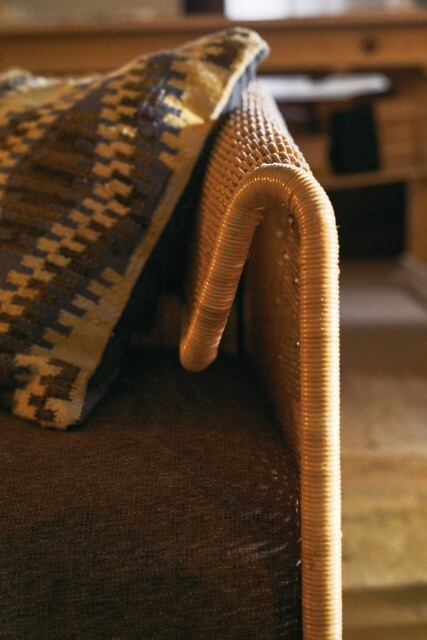 サンドラー 片肘(向かって右) 1人掛けチェア 天然ラタン(籐製) クッションファブリック座面