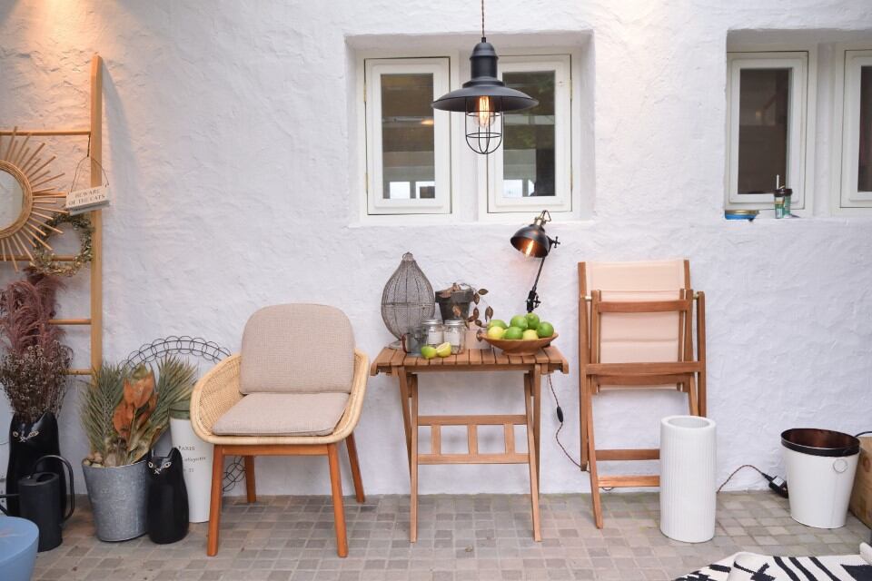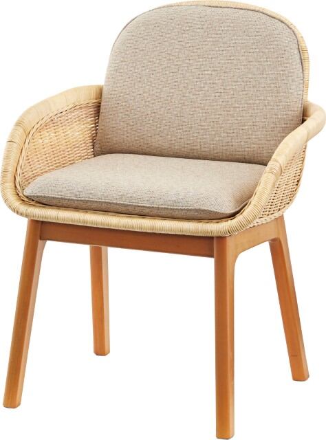 ●天然素材のラタン(籐)と天然木ミンディを使用した、風合い豊かなチェア。