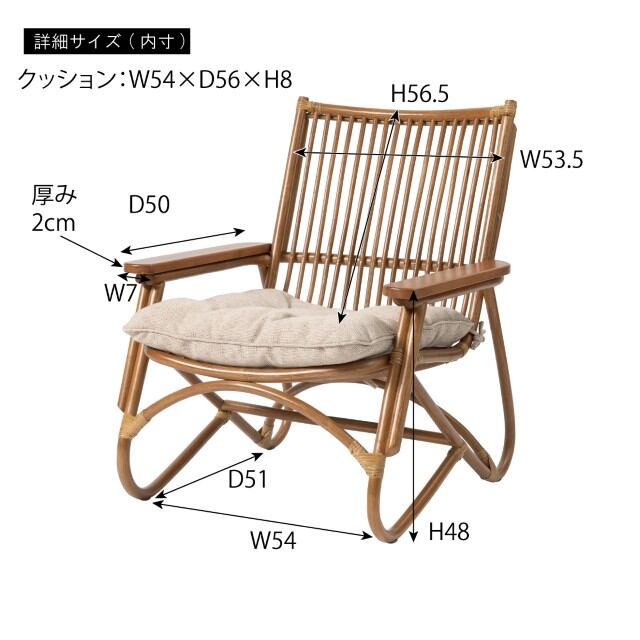 パーソナルチェア 天然ラタン(籐製)フレーム クッション付