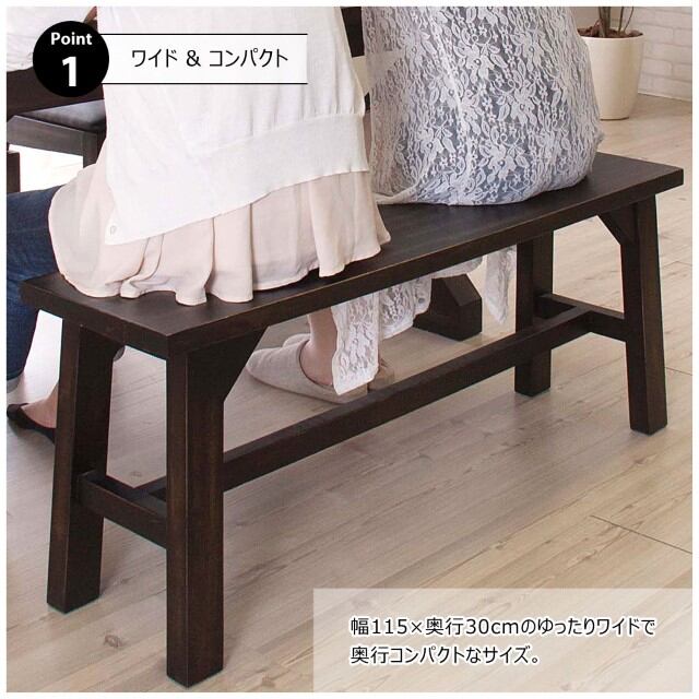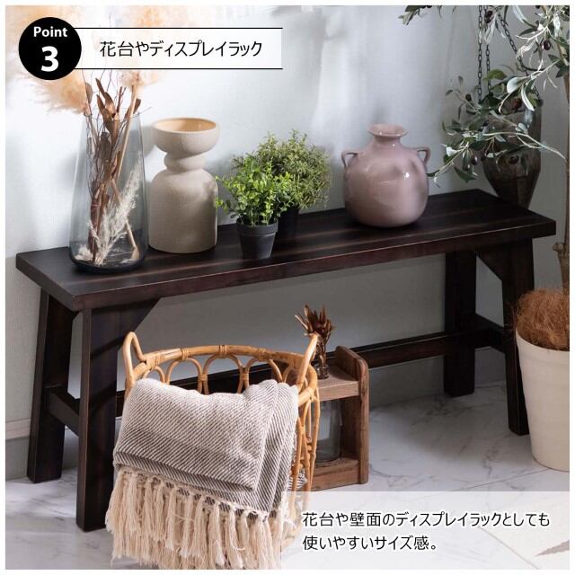 【原産地】 インドネシア 完成品 ベンチ ダイニング 天然木 木製 マホガニー ワイド コンパクト 幅115×奥行30cm 玄関 バルコニー ベランダ 花台 ディスプレイ TV台 ローボード ラック