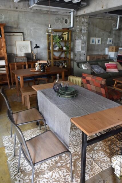 ローマン ダイニングテーブルW145 天然木(パイン) アイアンフレーム