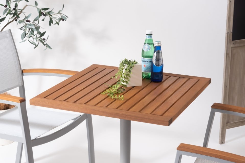 オリー カフェテーブル 天然木(ユーカリ) アルミフレーム