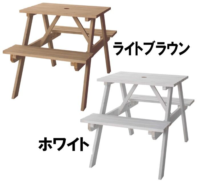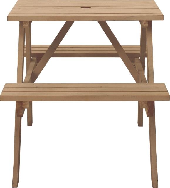テーブル&ベンチ W75 天然木(杉) パラソルホール付