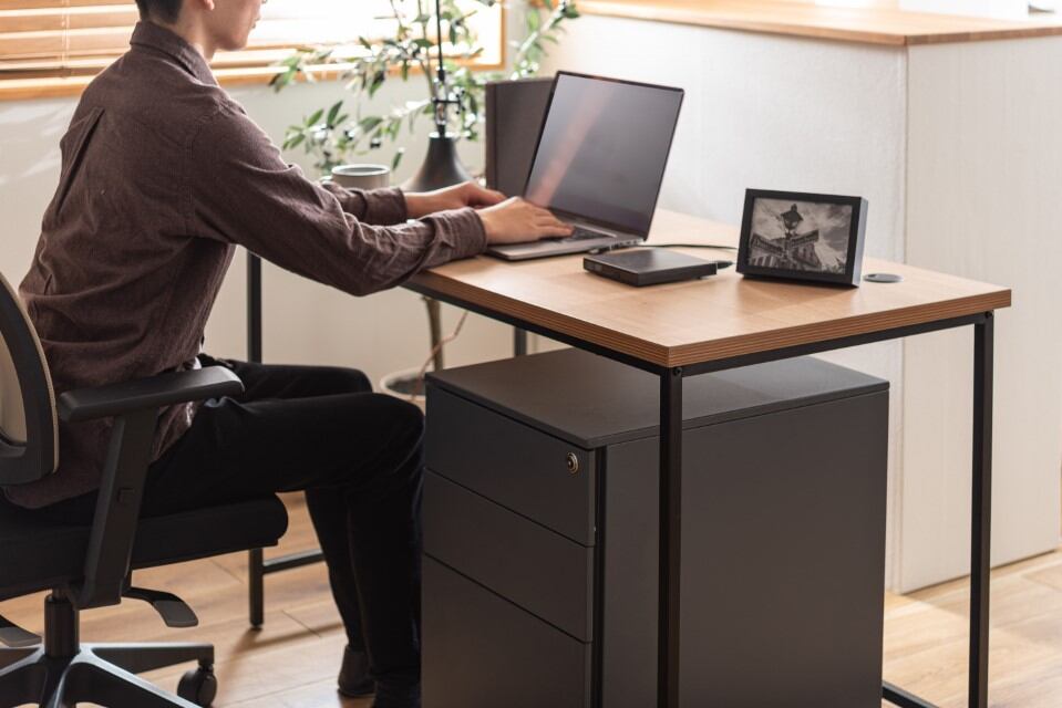 シンプルでスタイリッシュなデスクが登場。すっきりとしたデスクと鍵付きで多機能なワゴンの組み合わせで快適なオフィスライフを実現します。