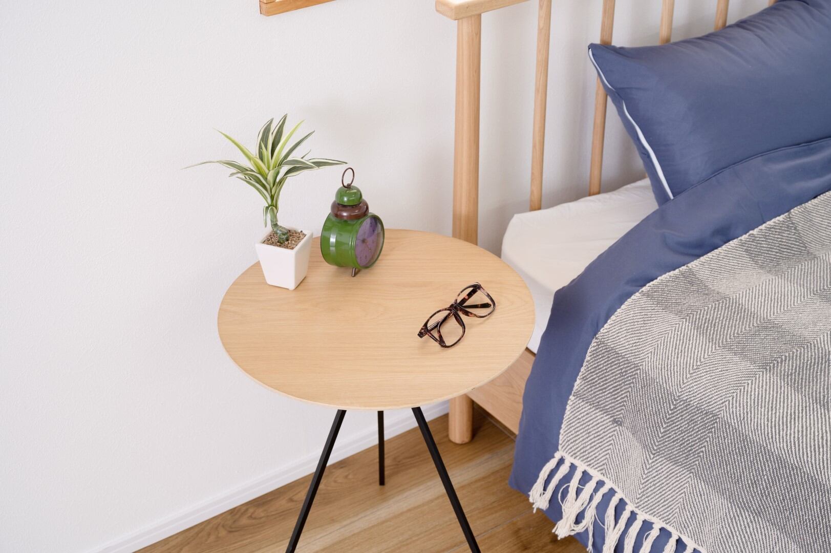 サイドテーブル 天然木板(オーク天板) アイアン脚